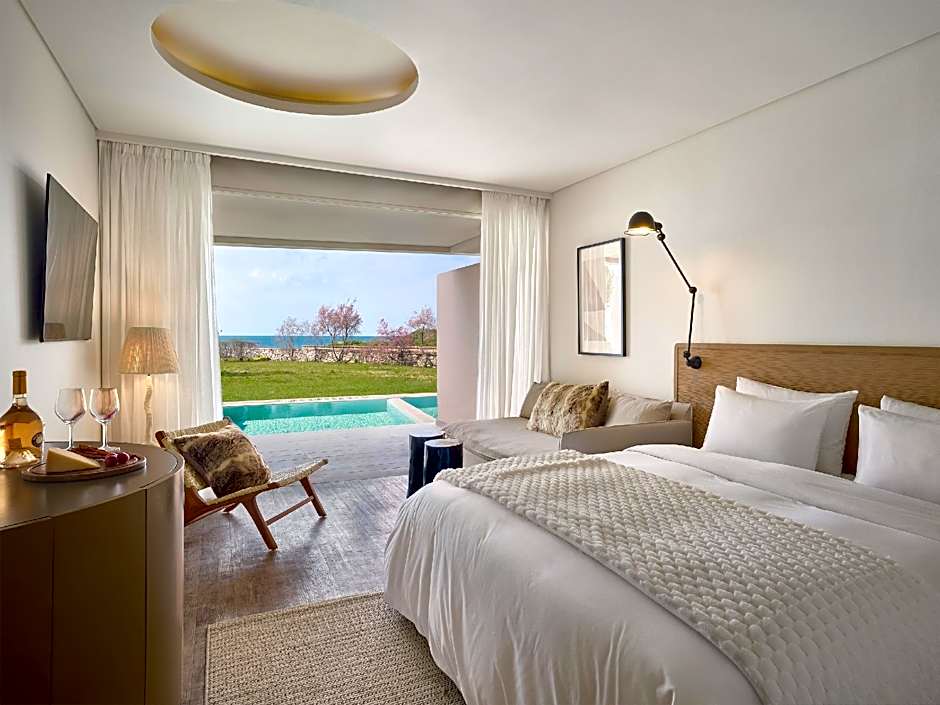 Offering a private pool, this room overlooks sea and garden views. It offers a spa bathroom along with free toiletries and hairdryer. A satellite TV is also available.